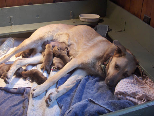 They are here! Perry Greene litter whelped 3/30/06 Ten puppies! 4 males and 6 females Sire: Hickory Hill Rastro - Best of Breed Bowdoinham, ME April 2006 Dam: Victors Liberty - Best of Breed Tamworth, NH 2/2006 |